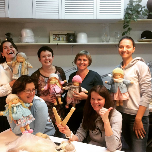 🤣 We’re working hard at the shop today fulfilling orders💗 just hanging with my waldorf dolls 😜