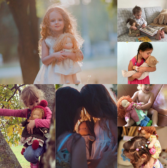 Some dolls have small suggestions of noses. Skin, eye and mouth colors vary with each doll, ideally to reflect the colouring of the child for a first doll.